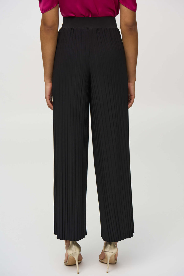 A pleated design and wide-leg silhouette add relaxed elegance to these silky knit pants. The sash and buckle on the elastic waistband ensure a perfect fit and a refined aesthetic.