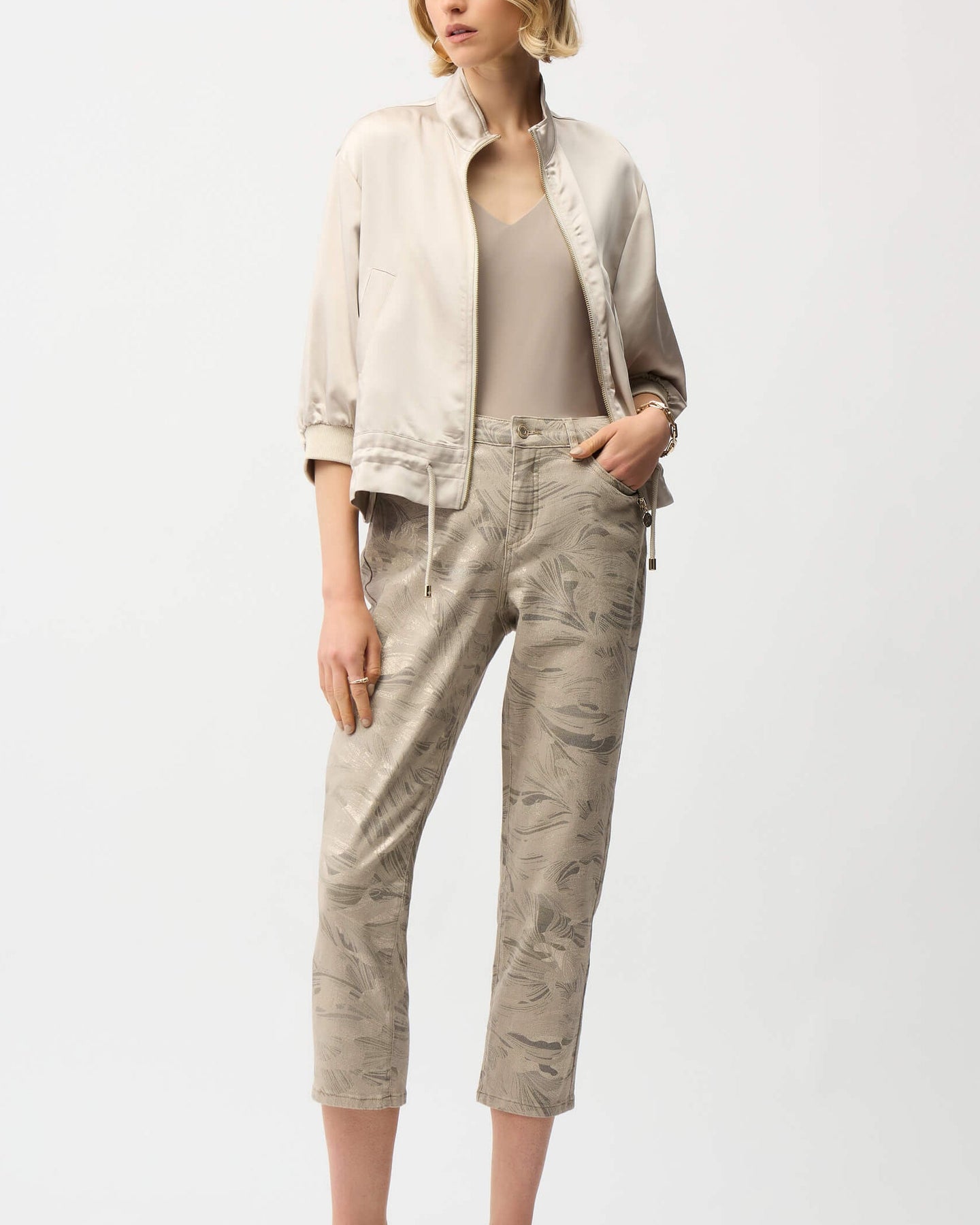 La Palma Metallic Abstract Print Gold Crop Jeans 261959 by Joseph Ribkoff at The Wardrobe
