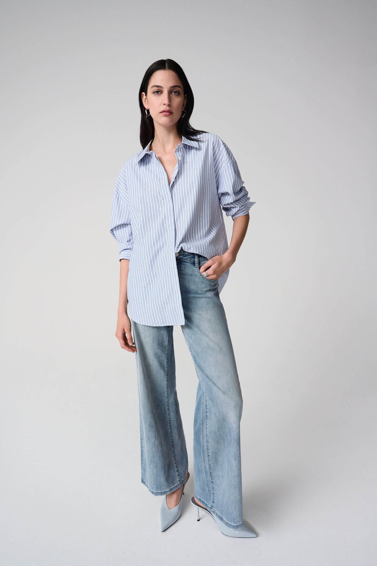 Tencel Stripe Print Boxy Shirt With Diamontes 261931