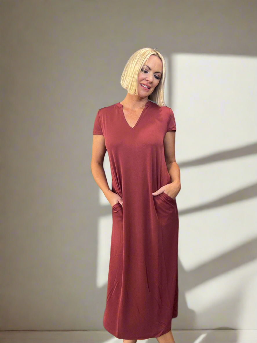 Chocolate Tencel V Neck Dress 42809 by Yerse at The Wardrobe