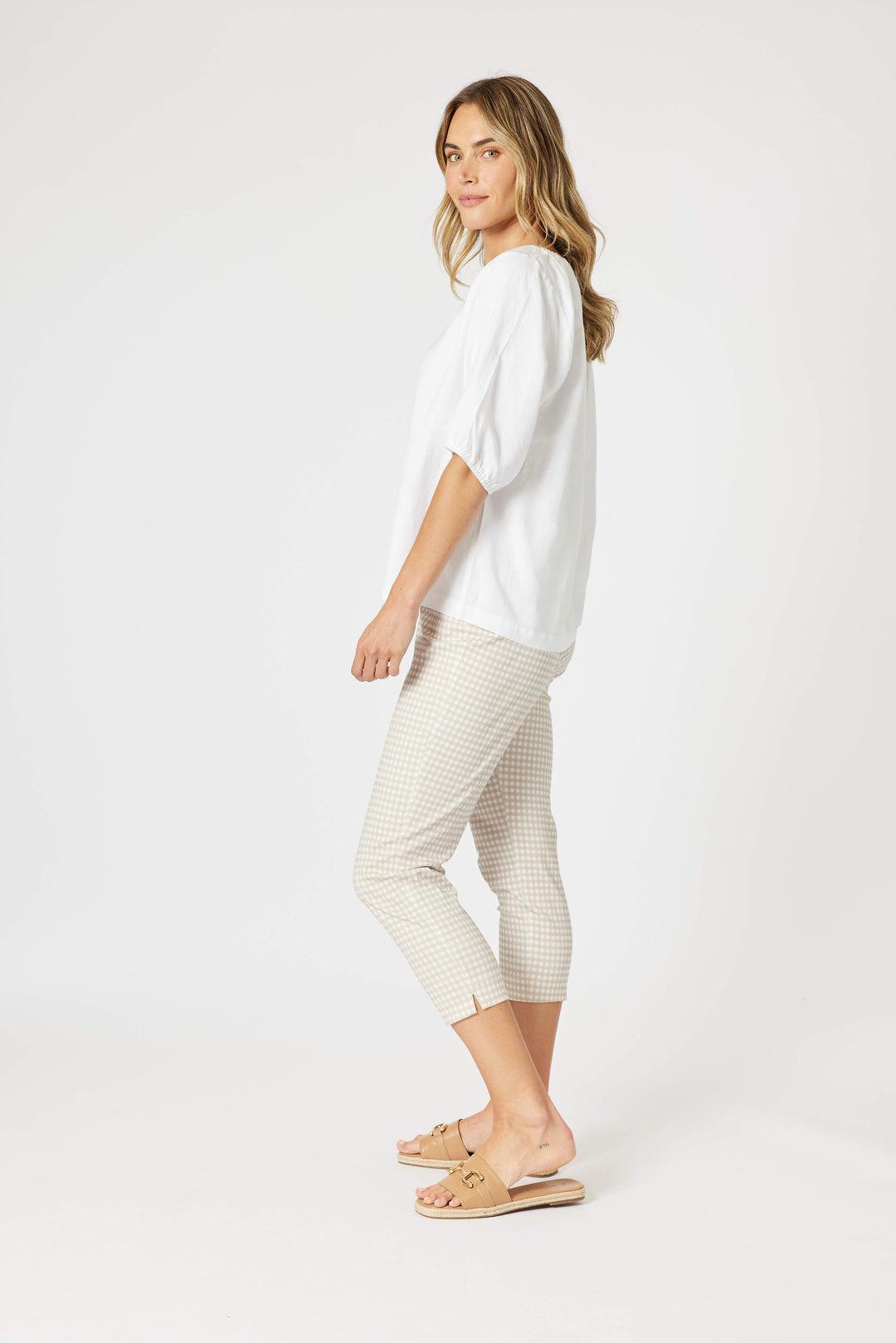 Lino V Neck Top 48258 - White by Gordon Smith at The Wardrobe