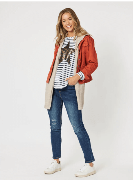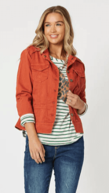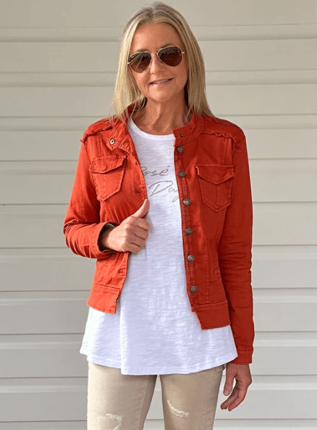 Military Style Denim Jacket - Maple 38706 by Threadz at The Wardrobe