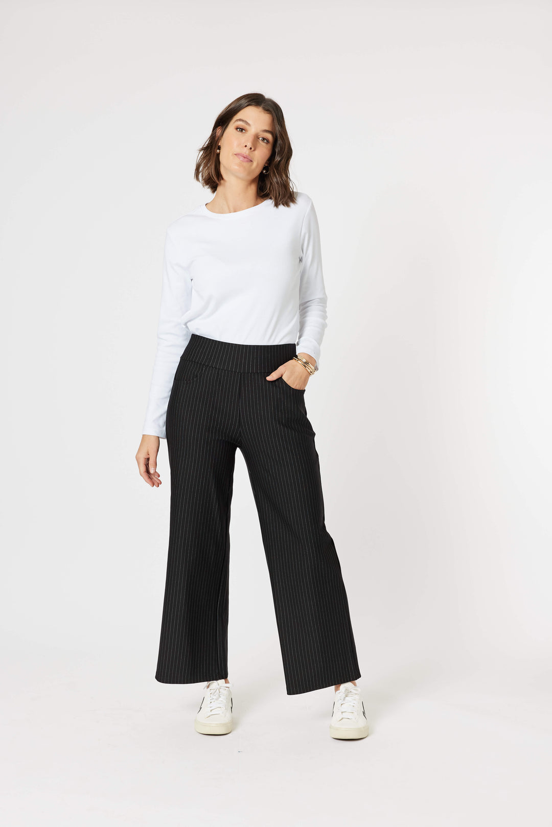 - Unleash your inner fashionista with the Nicky Wide Leg Pinstripe Pant!
