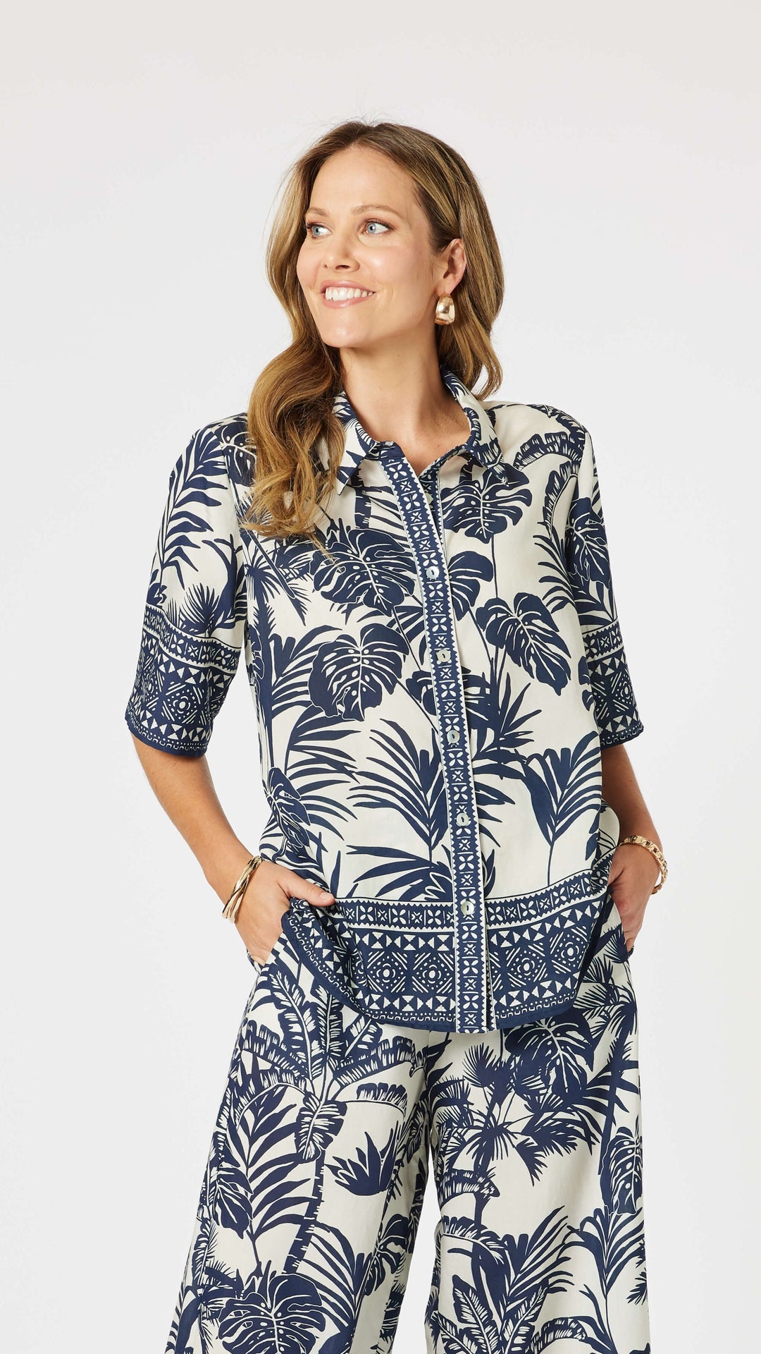 Palm Cove Shirt - Navy Multi 48161 by Hammock & Vine at The Wardrobe.