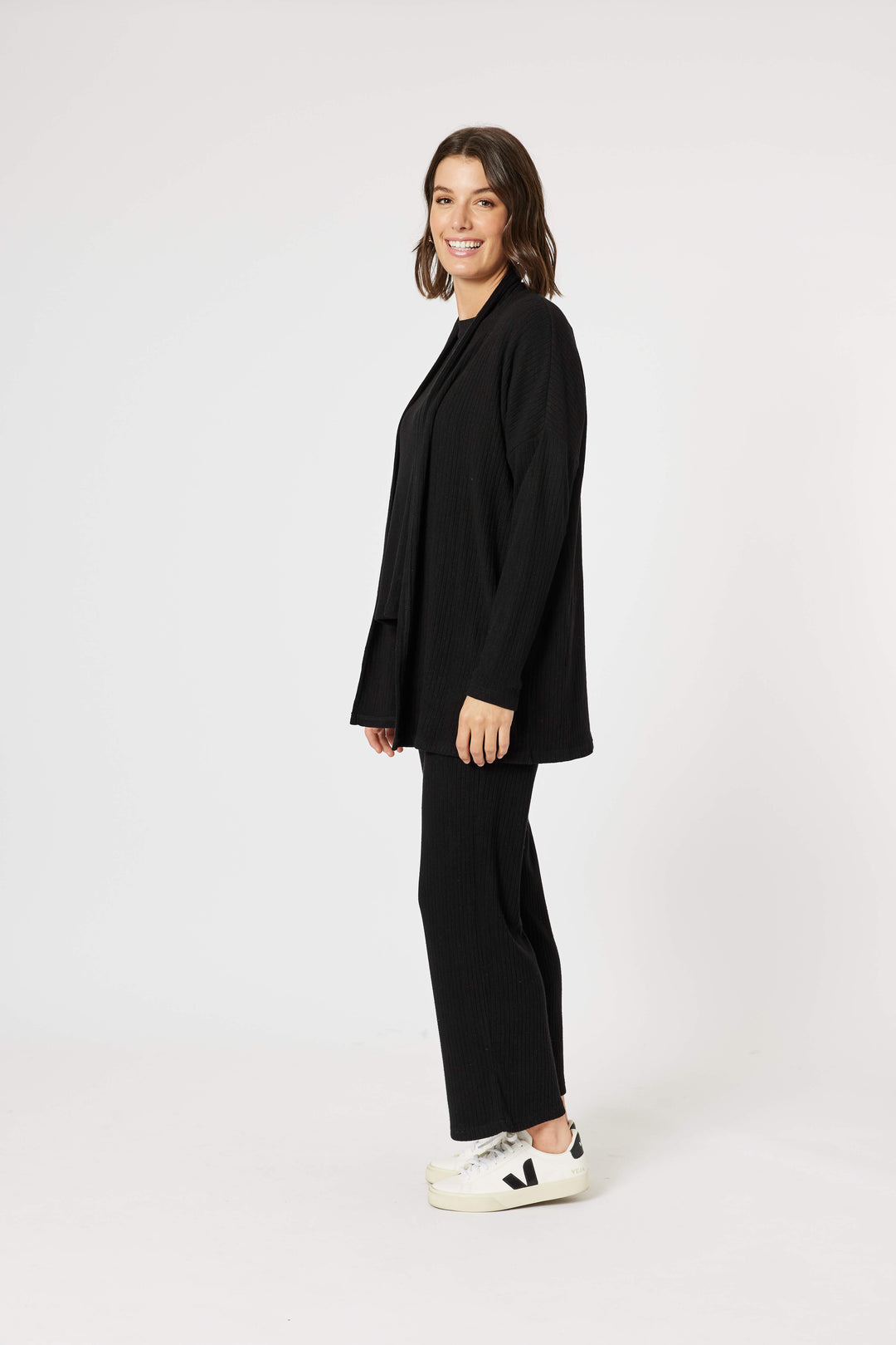 Ribbed Lounge Cardigan - Black 46978 Clarity at The Wardrobe