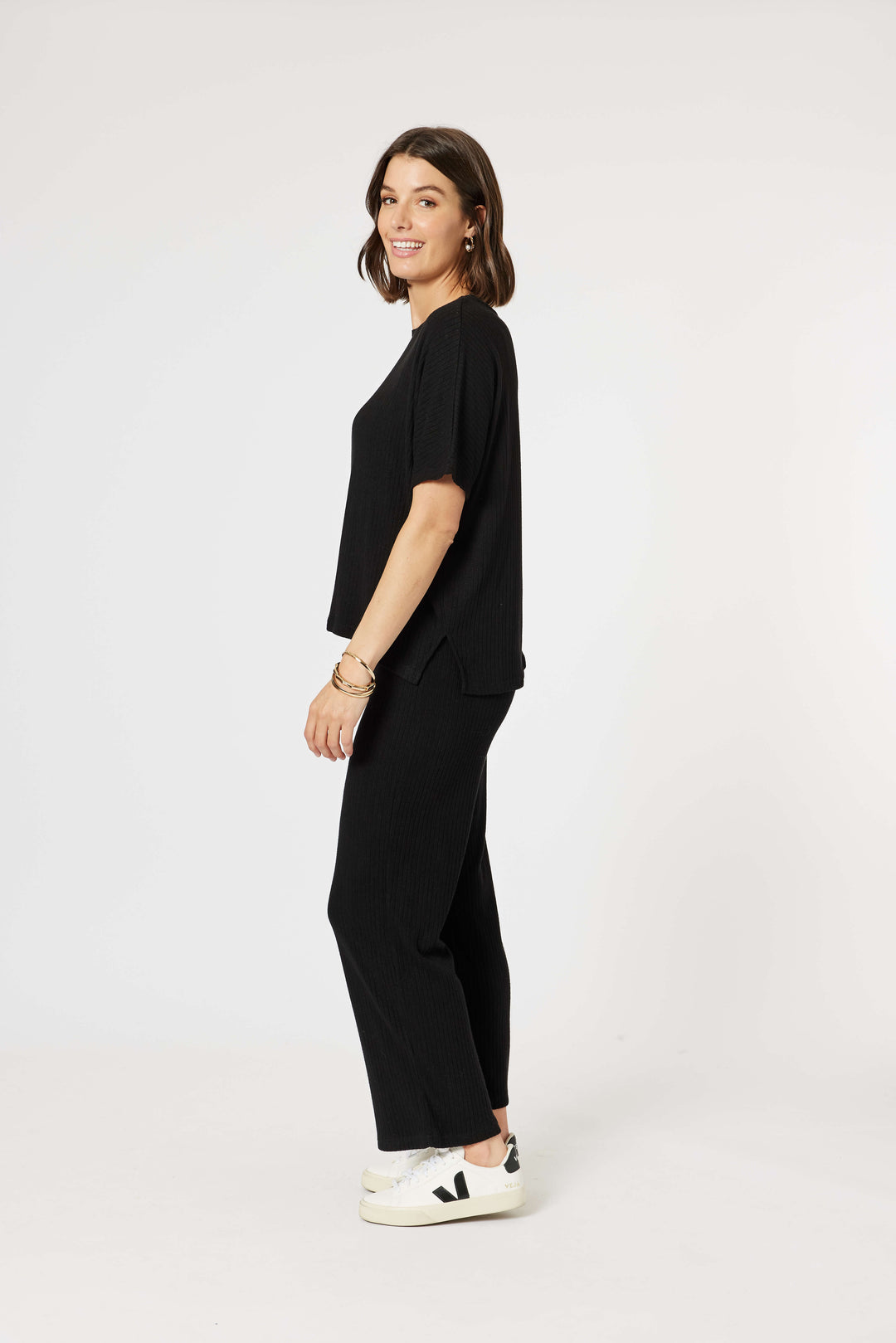 Ribbed Lounge Top - Black 46977 by Clarity at The Wardrobe