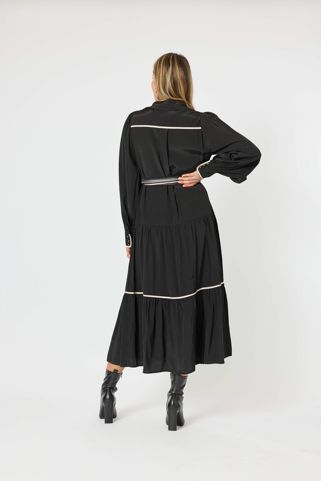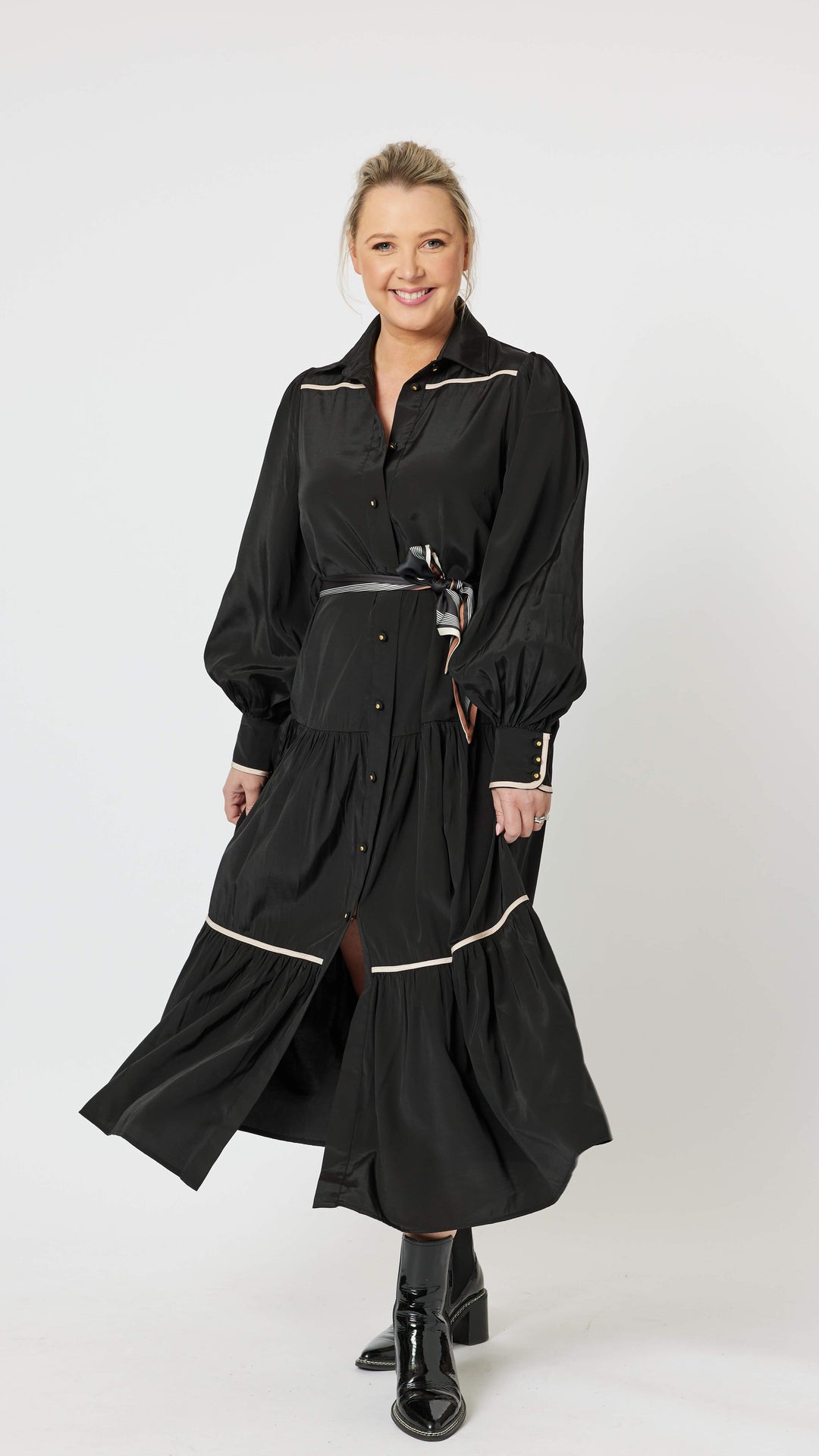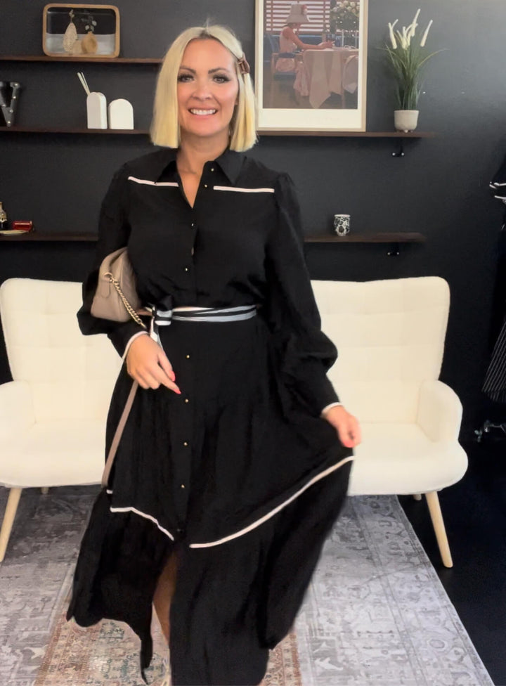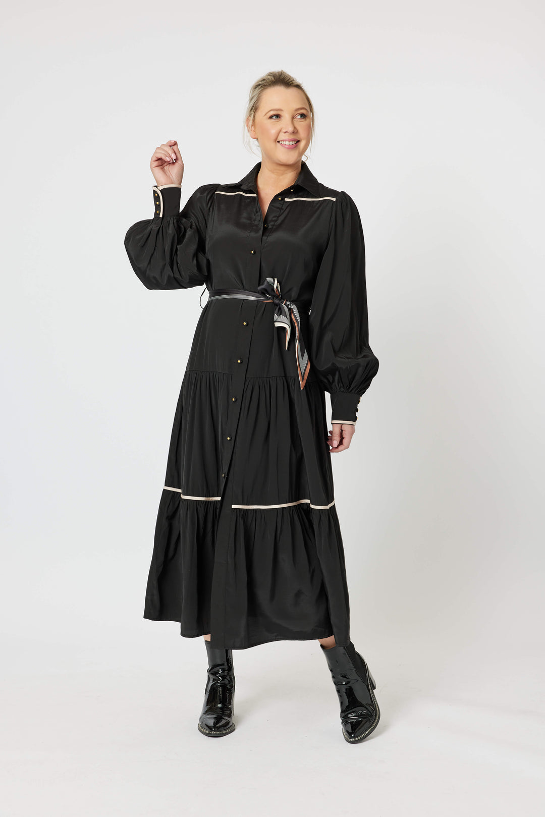 44344 - Roma Trim Dress With Scarf Belt - Black by Hammock & Vine at The Wardrobe