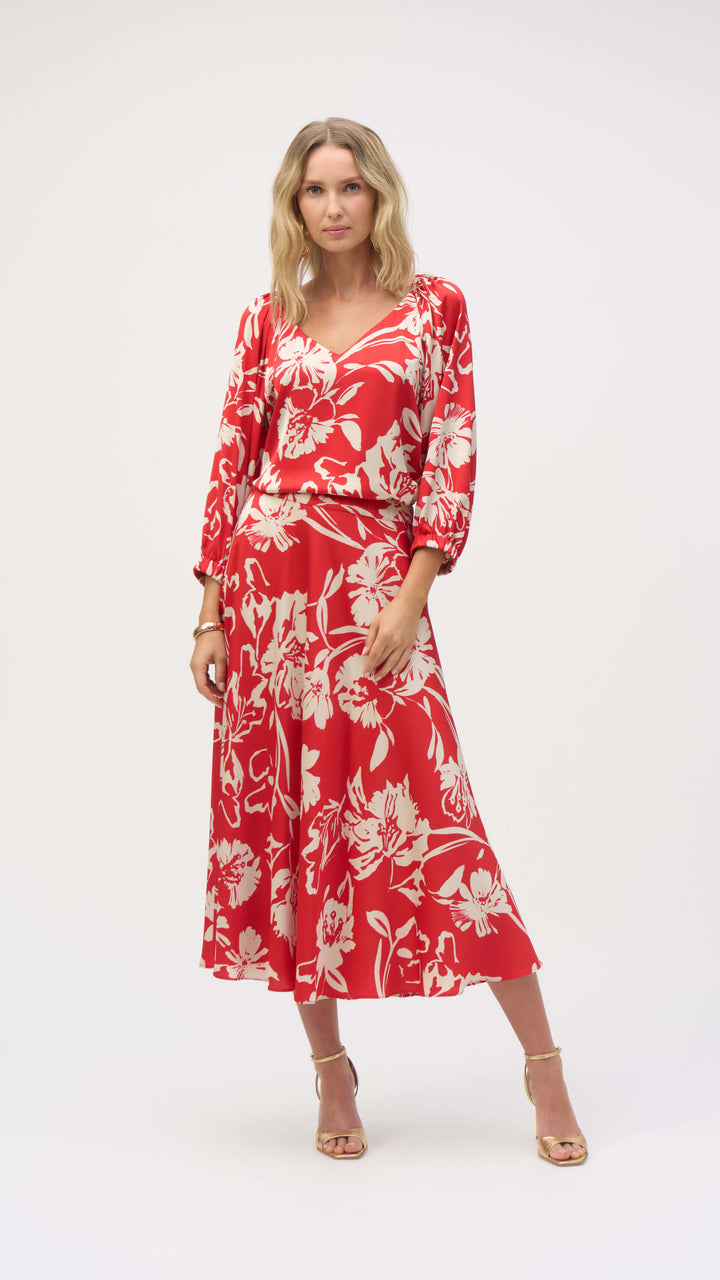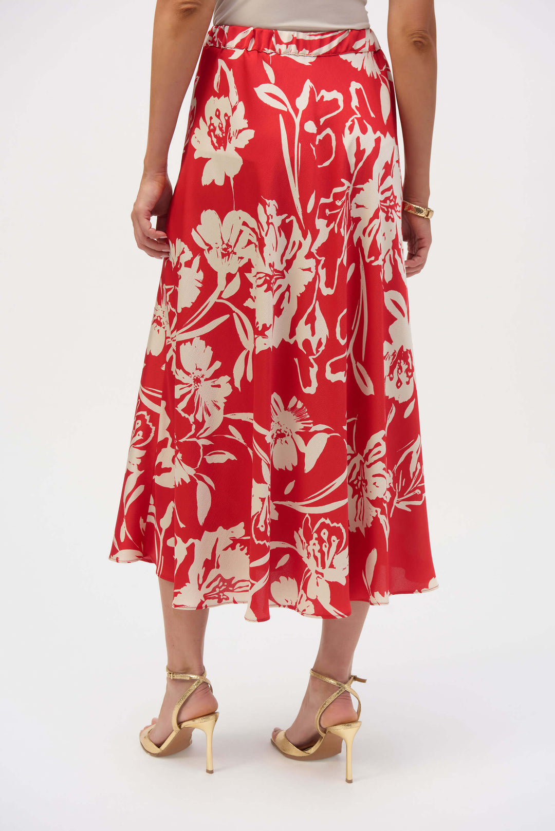 Embrace elegance with this enchanting skirt, where feminine florals meet sleek satin to create a truly captivating style. The graceful A-line silhouette skims your curves, with the hem falling just above the knees to create a flattering and confident look. A shirred elastic waistband at the back ensures all-day comfort, allowing you to transition effortlessly from day to evening events.