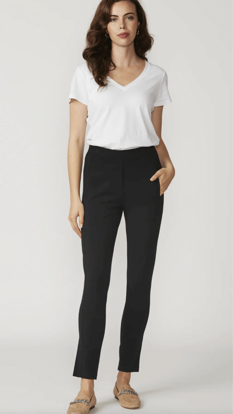 Our classic Scout Ponti Pant features a slim leg with front pockets. Functional pull-on pant for everyday comfort with contrast stripe inside elastic waistband.