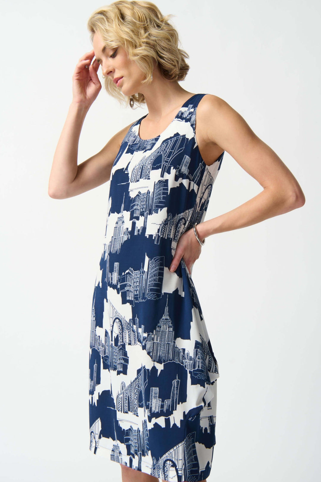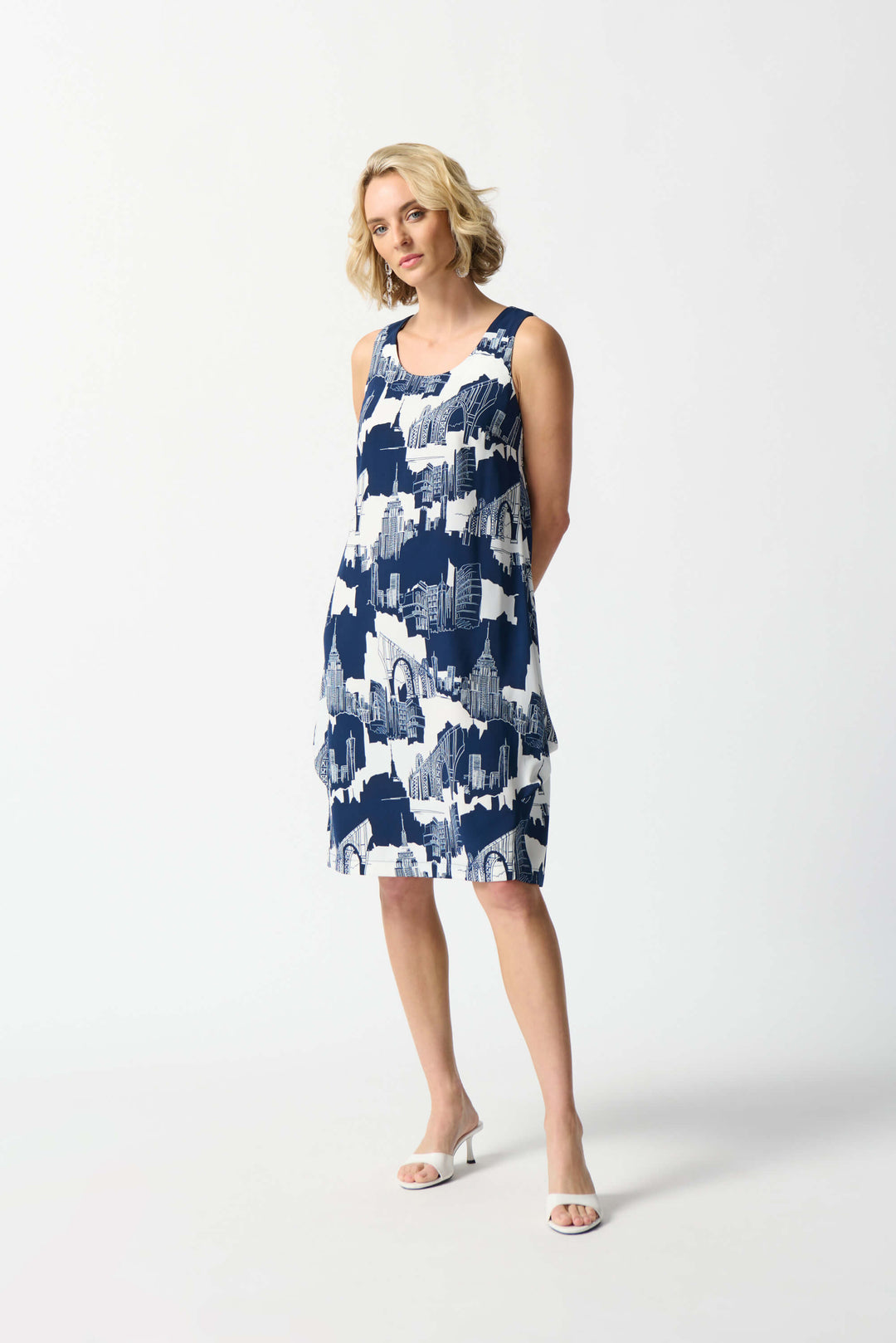Step into a world of charm with this scenery-printed gauze cocoon dress. Sleeveless with a scoop neckline, it's perfect for warm days. Pleats detail at the sides add a playful touch. Back zipper opening ensures easy wear, and the unlined design keeps you comfortable. Embrace versatile fashion with this whimsical piece!