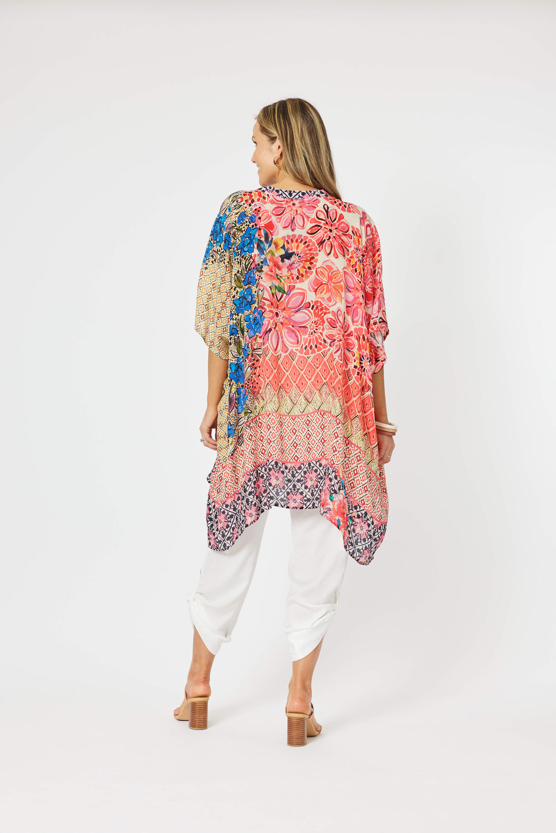 - Its oversized fit offers relaxed ease, while the vibrant colours and bold print make it a statement piece